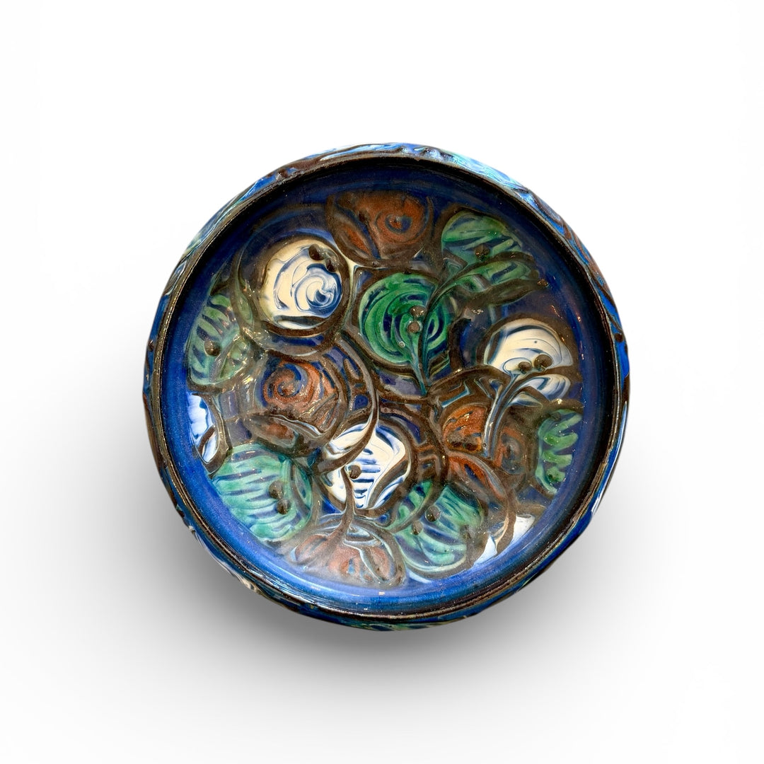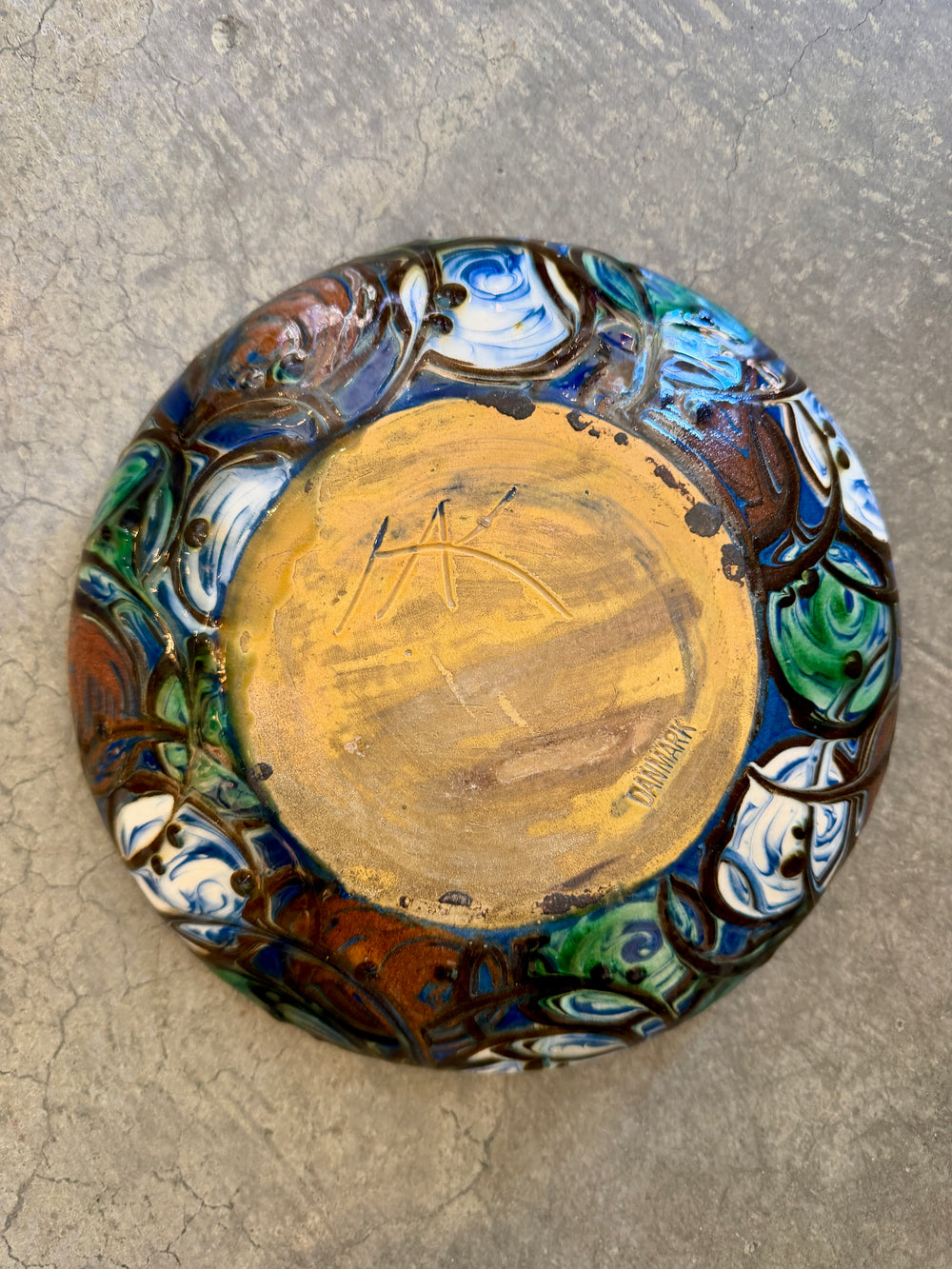 Vintage Display Bowl by HAK, Denmark, Signed | Abstract Floral Design