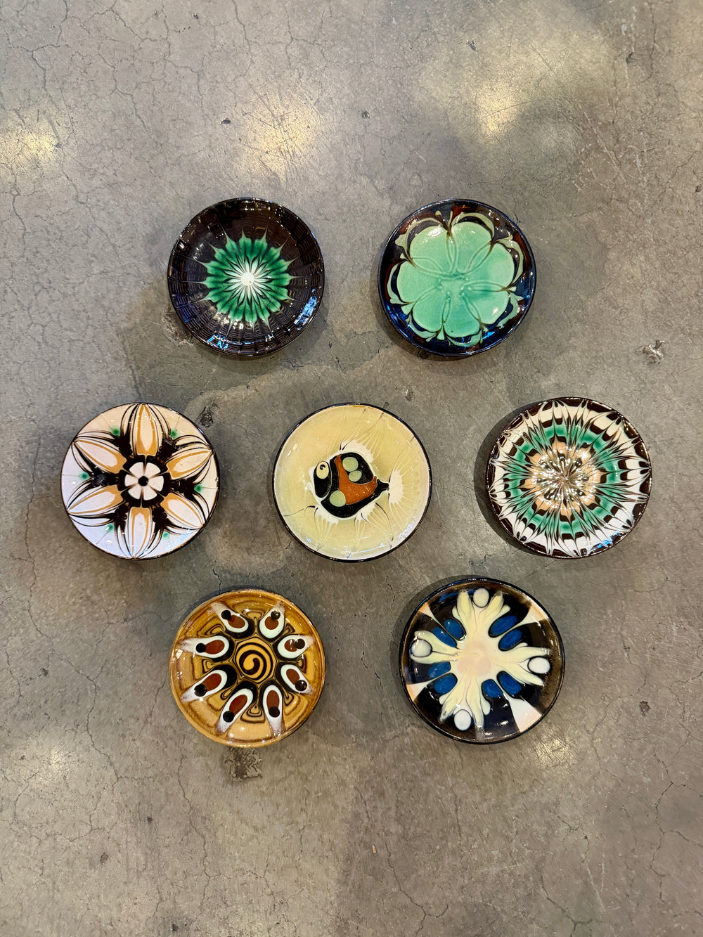 Vintage Small Flat Dish by HAK, Denmark, Signed | Multicolored Flower