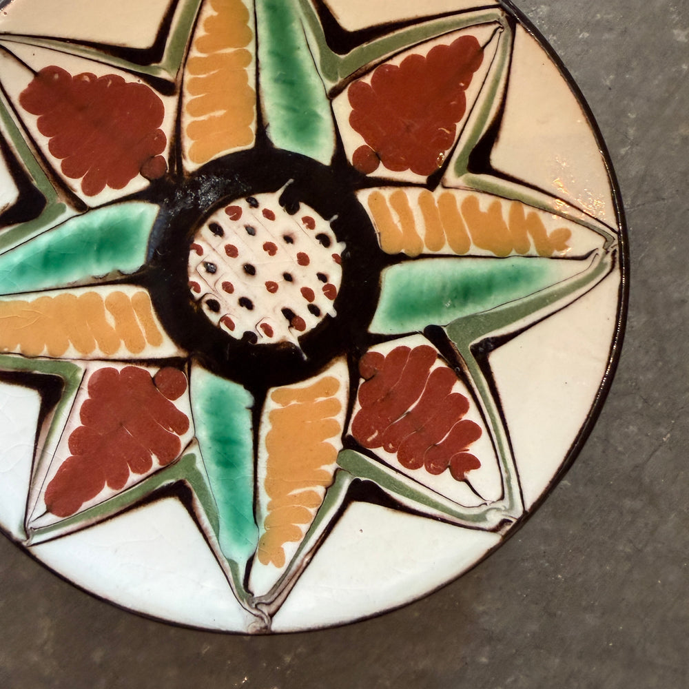 Vintage Hand-Painted Folkart Terracotta Platter / Wall Hanging