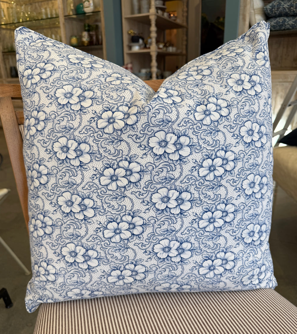 Custom 21" x 21" Pillow made from Vintage English Floral Printed Cotton | Blue A