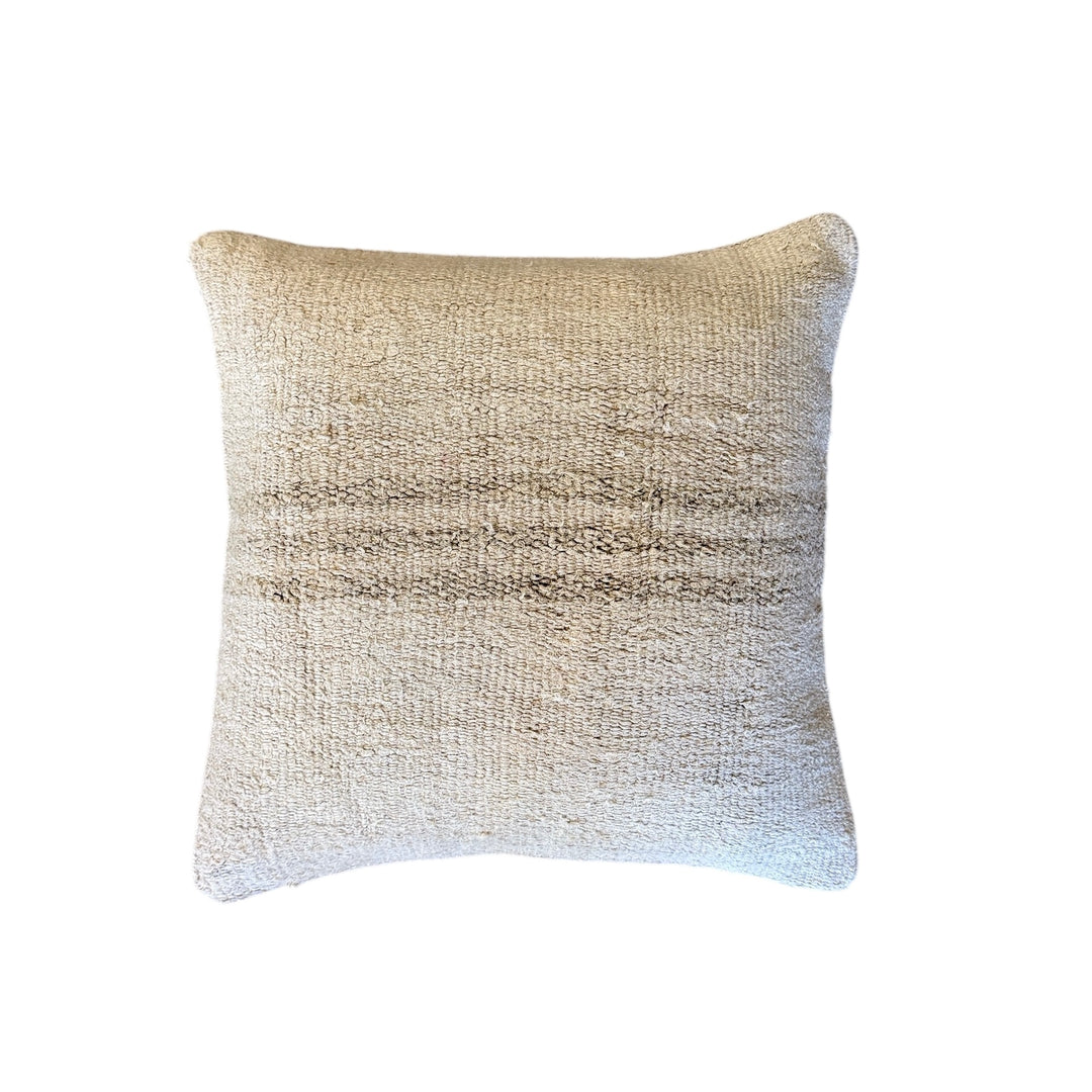 Custom 16" x 16" Pillow made from a Vintage Hemp Rug, Turkey | Flax Stripe
