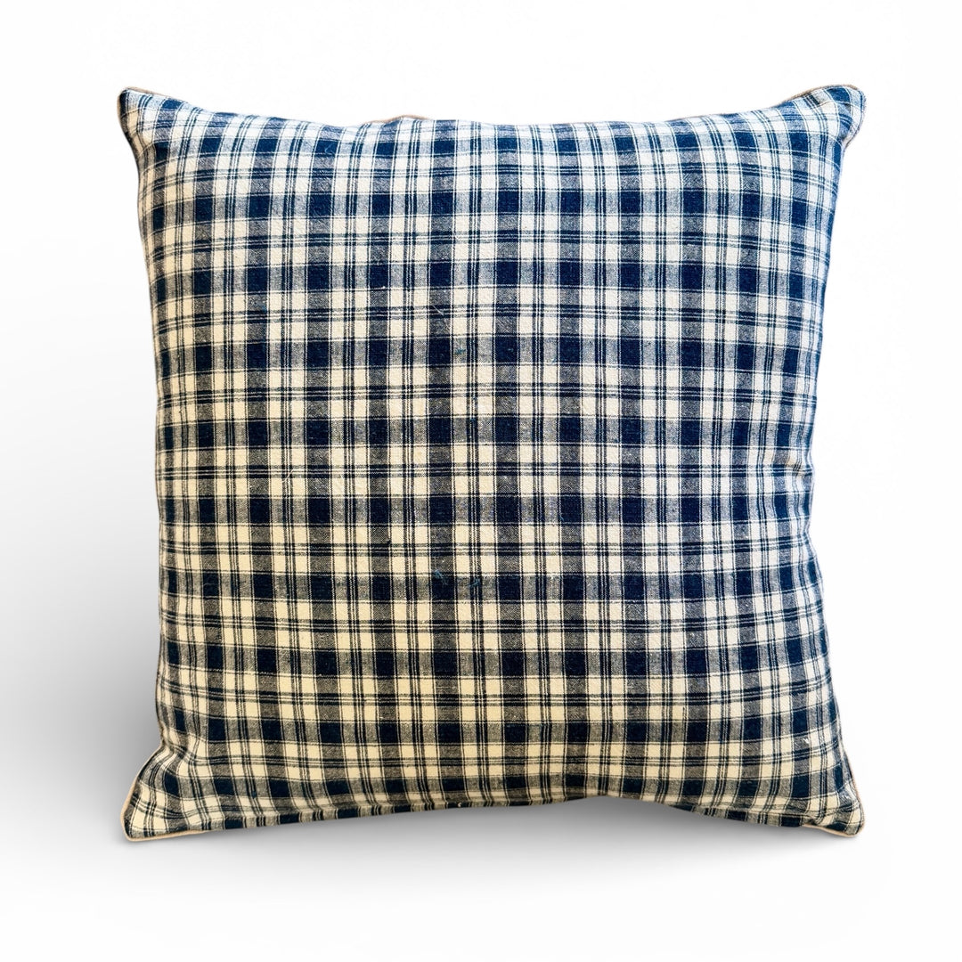 Custom 21" x 21" Pillow made from Vintage Handspun French Linen | Blue + White Check