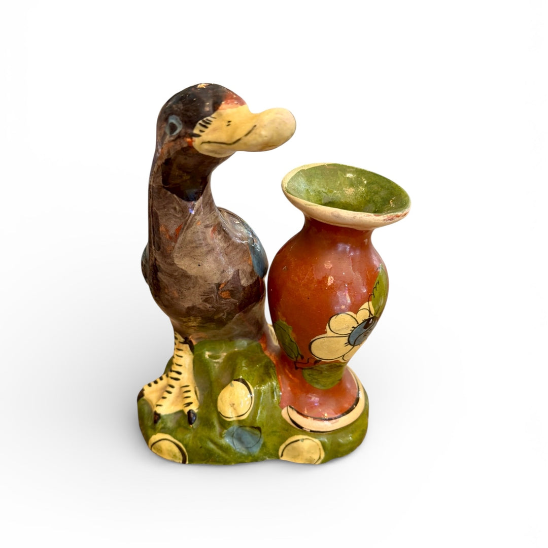 Vintage Mexican Folk Art Pottery Duck with Urn Vase